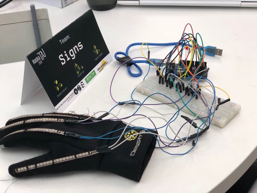 פרוייקט sign פיתח כפפה אשר קוראת את תנועות שפת הסימנים ומקריאה אותן דרך הטלפון הנייד. לכפפה מחוברים סנסורים, לכל אצבע מחובר חיישן אשר מזהה את המנח של האצבע וקולטים כיפוף והזזה של האצבעות ומתורגמים לאותיות. לאחר התרגום המחשב מקריא את המשפט שנכתב ולמעשה נותן קול לאדם הדובר שפת סימנים. כרגע המוצר יודע לתרגם אותיות, אולם שפת הסימנים מורכבת ברובה ממילים שלמות. "השאיפה היא להצליח להוסיף סנסורים ולפתח אלגוריתם מתוחכם יותר מהאלגוריתם הקיים, שידע לתרגם גם מילים שלמות, בין היתר בעזרת טכנולוגיות AI, ואני מקווה שנצליח לפתח אחד כזה בהמשך" כך מסבירה טל שכטר.